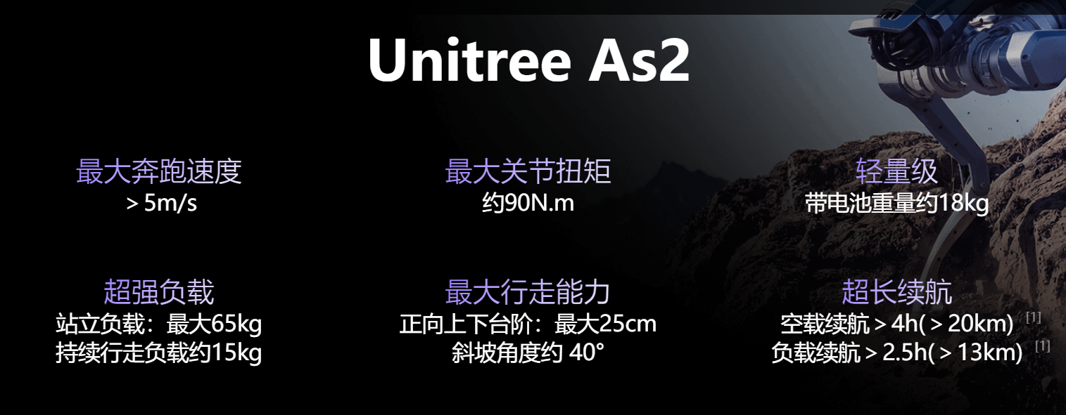 强劲电机 超强负载最大关节扭矩约90N.m,扭矩重量比约5N·m/kg(自重18kg)。